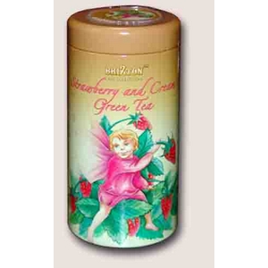 Описание:: чай зеленый байховый, средний лист, упакован в жестяную баночку. Ароматизирован ароматом земляники со сливками.