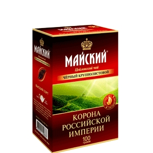 Описание:: Чай "Корона Российской Империи" - черный крупнолистовой цейлонский чай высшего качества. Именно он первым открыл эпоху крупнолистовых чаев в современной России. Выращен на Целоне. Упакован в картонную пачку. Новый дизайн. Сочетание горного воздуха, теплого влажного климата и красных почв создает исключительные условия для выращивания превосходного чая. Весь цейлонский чай от Компании "Май" протестирован специальной квалификационной службой Шри-Ланки.